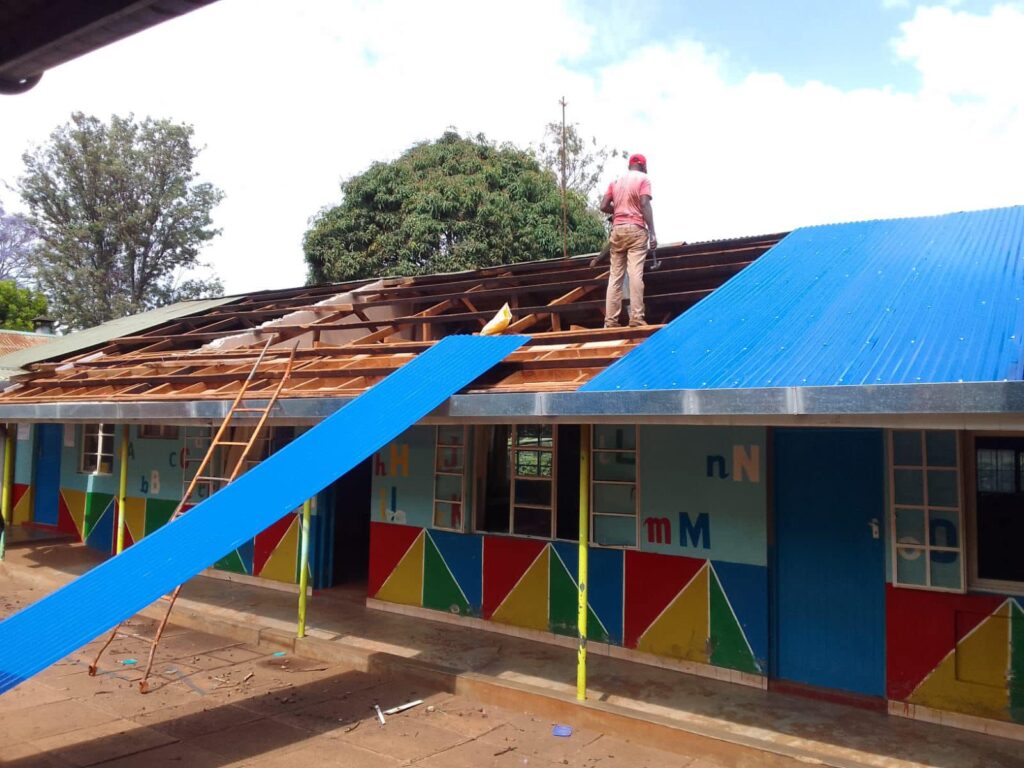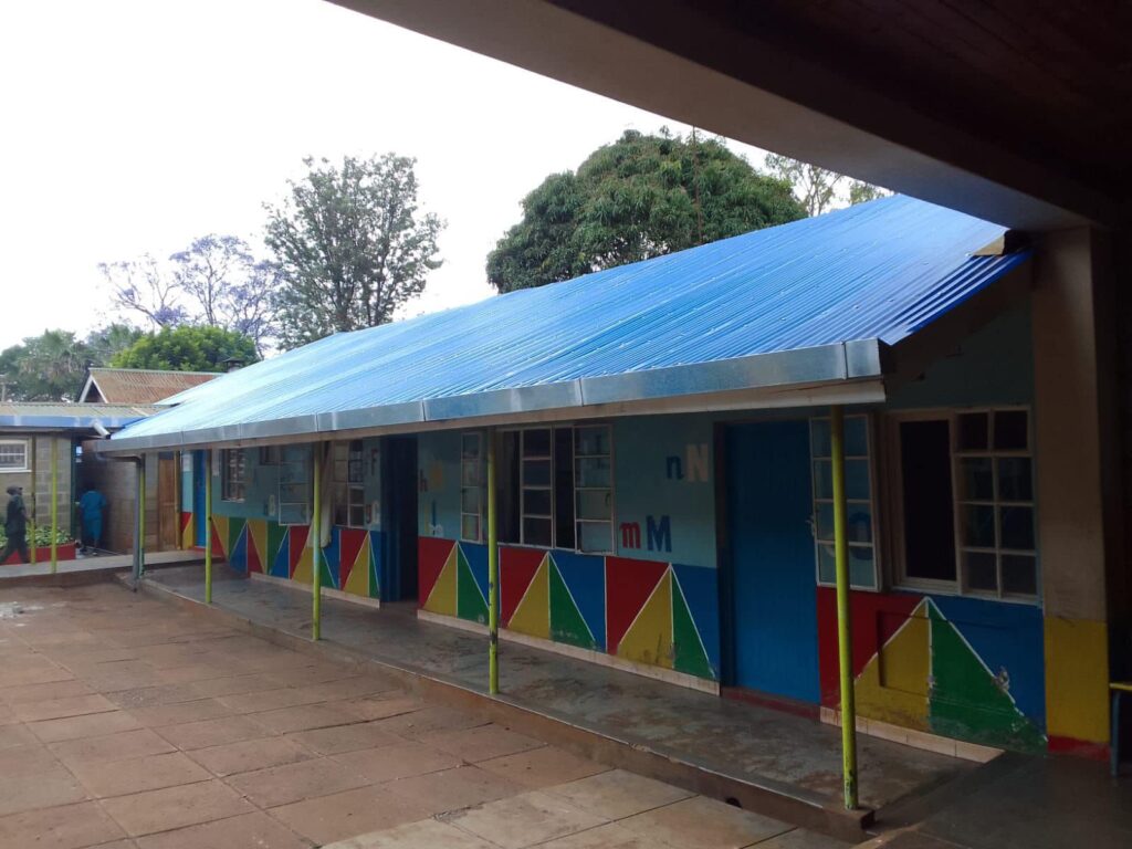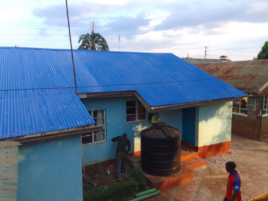 Ecco i tetti blu, nuovi, splendidi splendenti del nostro orfanotrofio, a Embu, in Kenia!