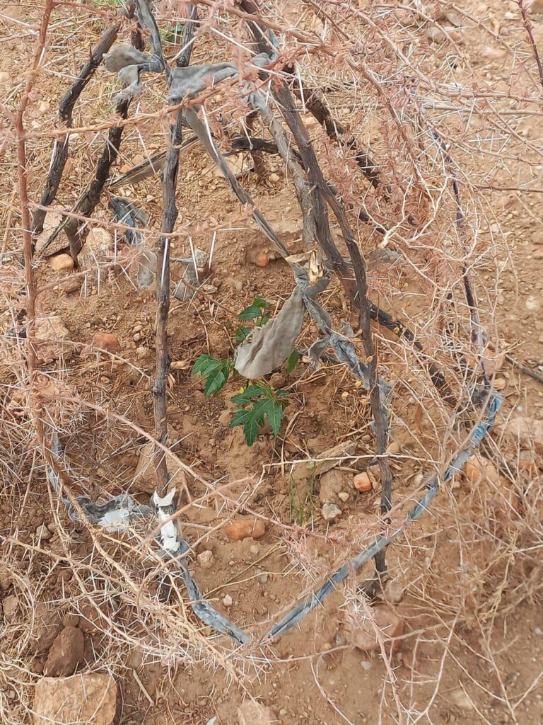 Gli abitanti dei villaggi e i ragazzi delle scuole se ne stanno prendendo cura, mettendo intorno alle piantine dei rami intrecciati fitti fitti, che fanno da nursery, così che gli animali e il sole non li rovinino, prima che siano abbastanza forti per crescere.